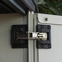 The style utters heavy duty thanks to its metal hinges. durable resin construction. and streamlined design.